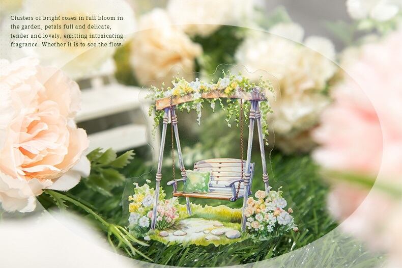 少女と幻想的なブランコが描かれた、心温まるデザインのシールです。優しいカラーが印象的で、手帳やノートをかわいらしく彩ることができます。コラージュやプレゼントのデコレーションにもぴったりです。