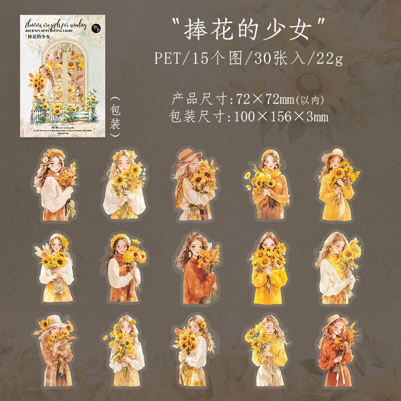 太陽のように明るく、元気いっぱいなひまわりのデザインが施されたフレークシールです。色鮮やかで楽しいイラストは、コラージュや手帳のデコレーションにぴったり。自然の美しさを感じさせる、幸せな気持ちを引き出す商品です。