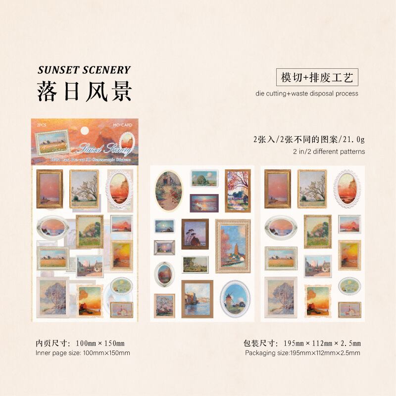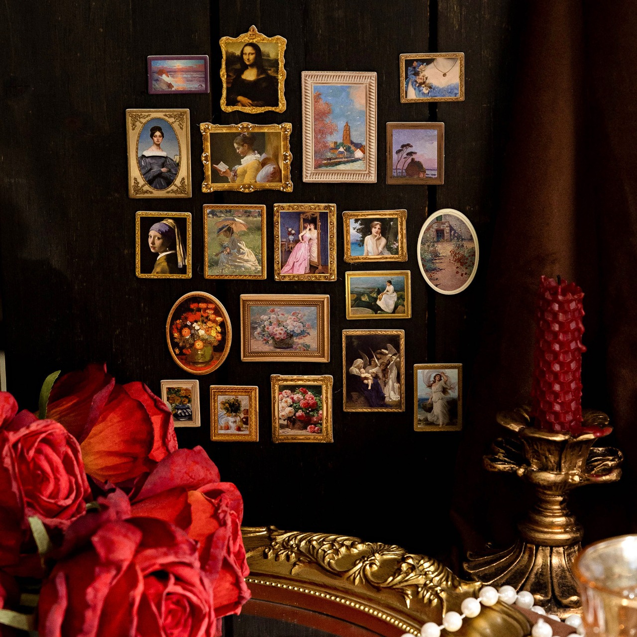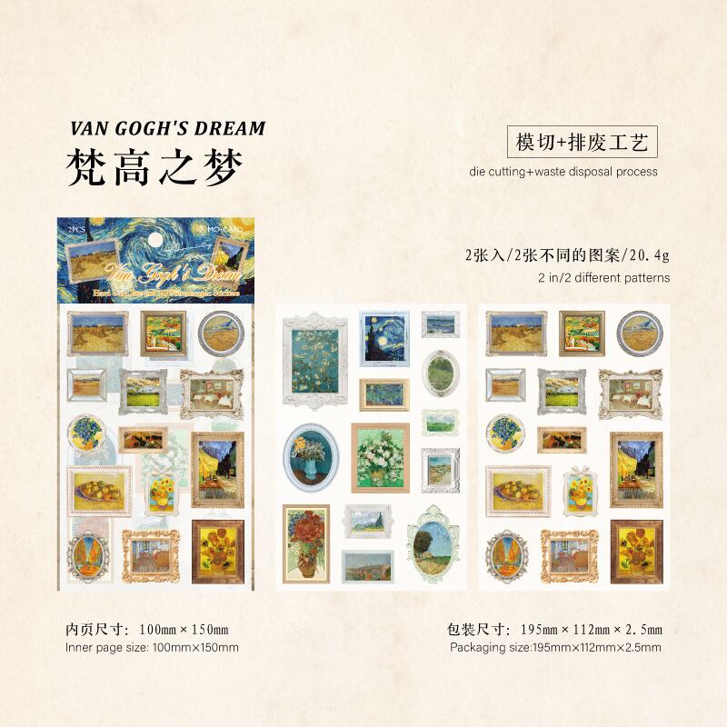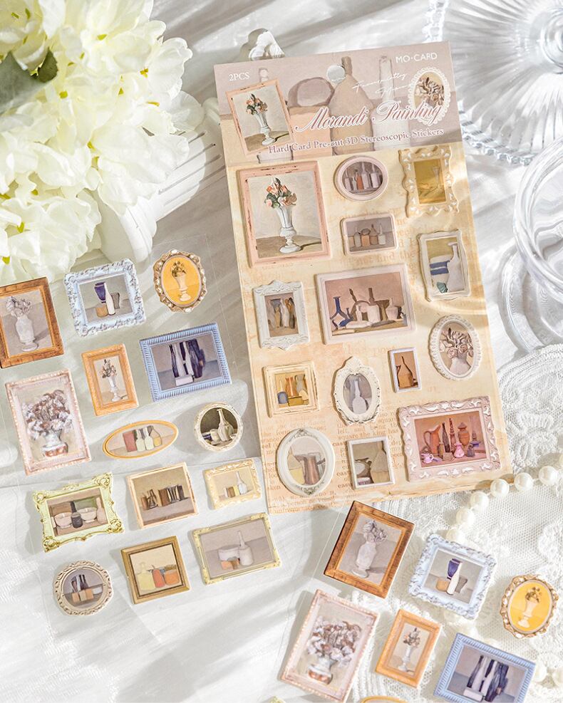 美術館の名画をモチーフにしたカードのような厚紙で作られた立体的なシールです。アートを身近に感じながら手帳やノートのデコレーションにぴったり。心に響く美しいデザインが、コラージュを彩ります。お気に入りの作品と共に、自分だけのスタイルをお楽しみください。