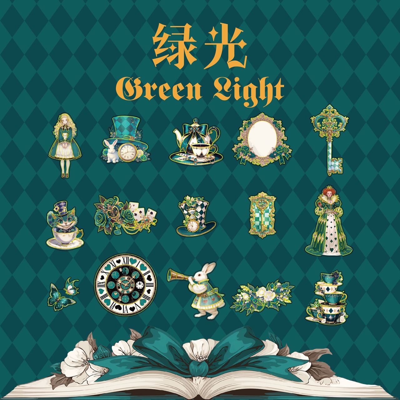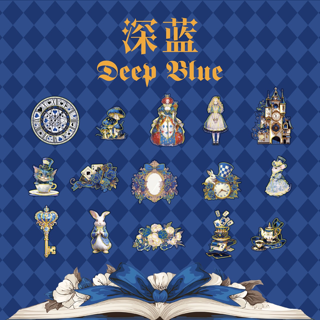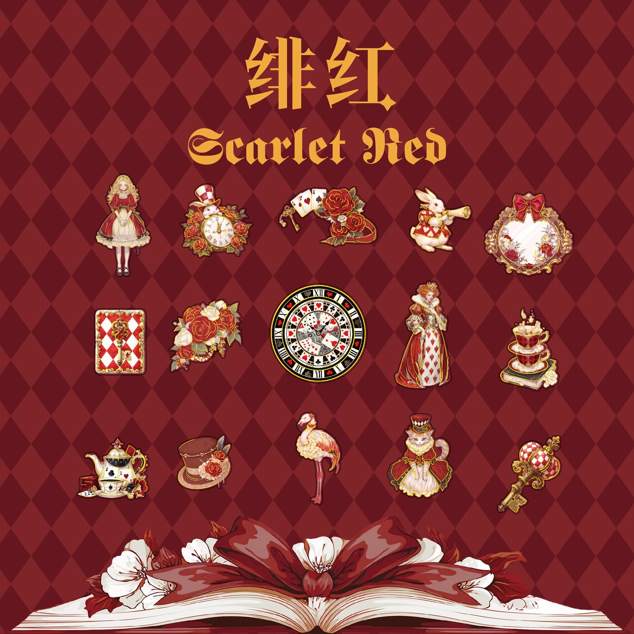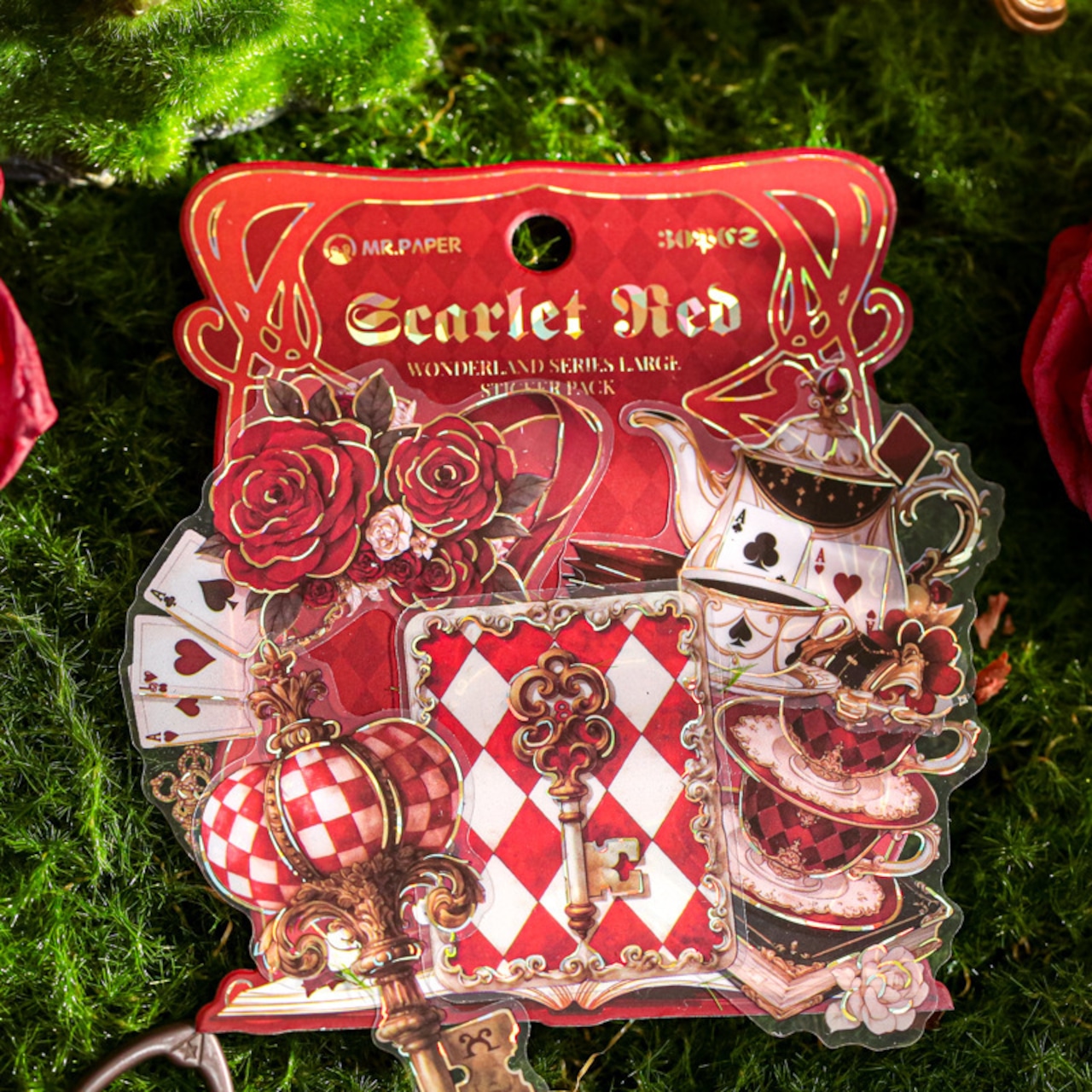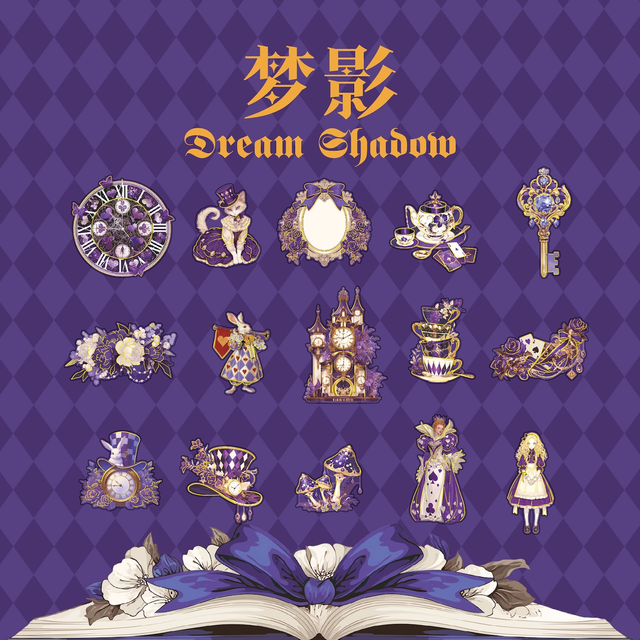 アリスの幻想的な世界観を表現したシールです。大きなサイズと個性的で色彩豊かなデザインは、どのシールも魅力的で存在感があり、コラージュのアクセントにおすすめです。