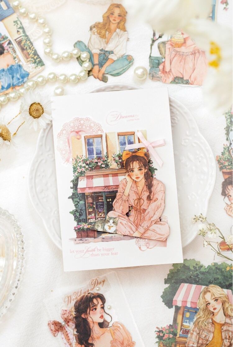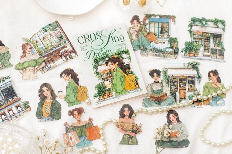 お洒落で可愛い女の子のデザインが詰まったシールです。手帳やノートに貼って、自分だけのオリジナルコラージュをお楽しみください。