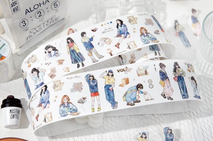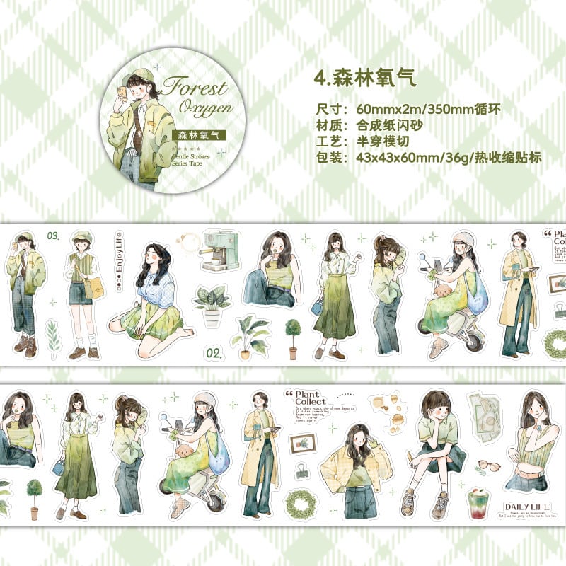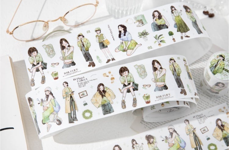 お洒落な女の子がいっぱいのやさしいタッチの人物シールです。様々なファッションやシチュエーションがデザインされているので、見ているだけで気分が上がります。ナチュラルで親しみやすい色合いなので、どんな紙ものにもなじみます。