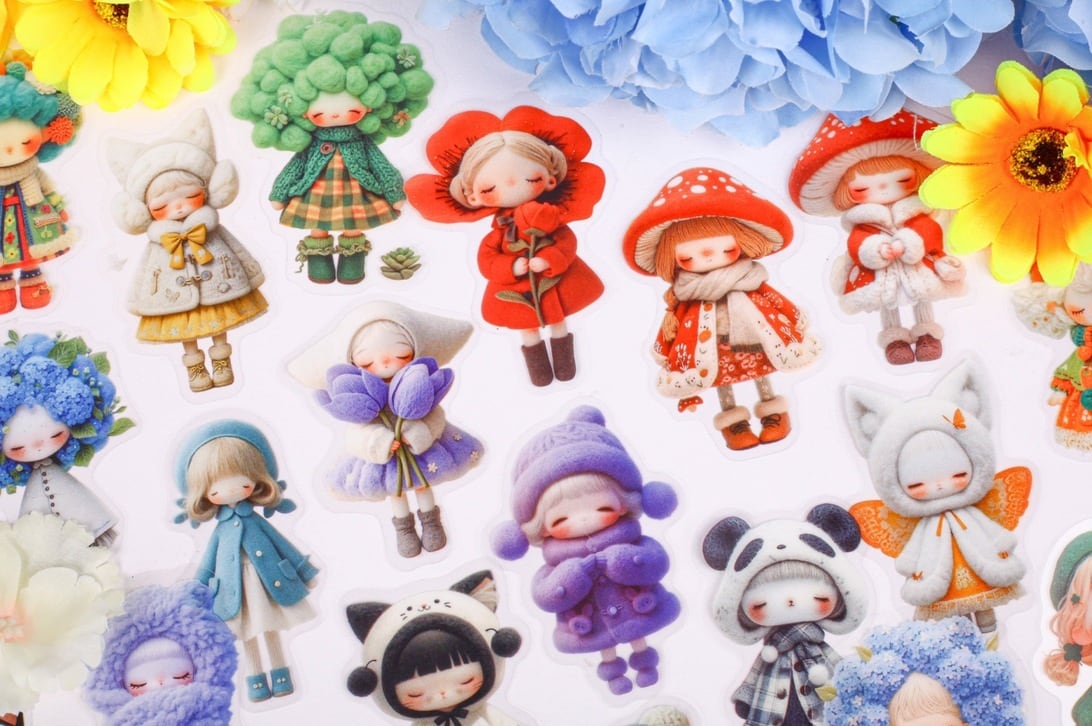 キュートなドールデザインのシールです。立体感のある特殊な印刷が特徴で、貼るだけでファンシーな雰囲気になります。一枚一枚大切に使いたくなるような愛らしいシールを素敵にアレンジして、コラージュをお楽しみください。