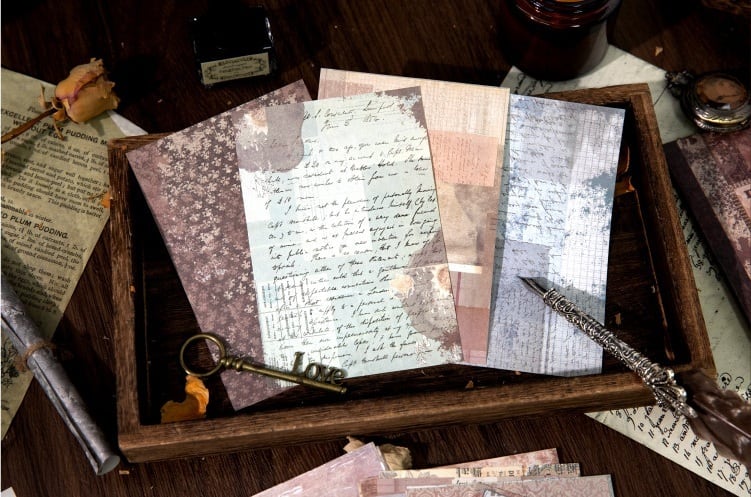 手帳やノート、スクラップブッキングなどを、アンティークな雰囲気に仕上げることのできるヴィンテージ感溢れる素材紙です。様々なデザインがセットになっているので、特別なセンスがなくても、ただ貼るだけでおしゃれな雰囲気が完成します。初めてコラージュに挑戦する方や、気軽に手帳をデコレーションしたい方にぴったりの商品です。