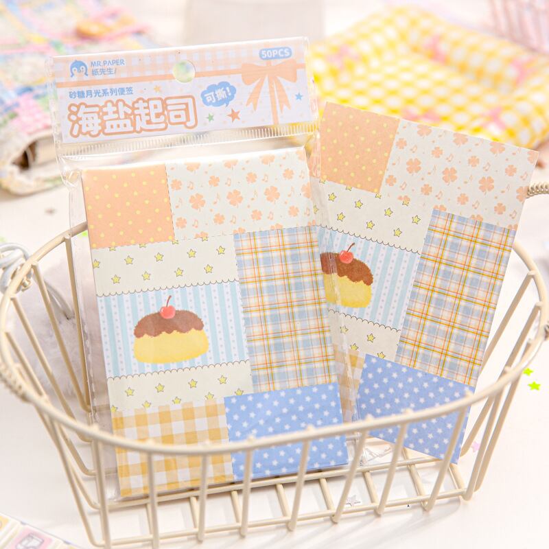 【メモ全種セット】海外 韓国風 パッチワーク柄 淡色 かわいい 手帳デコ 50枚|Sugar Moonlight