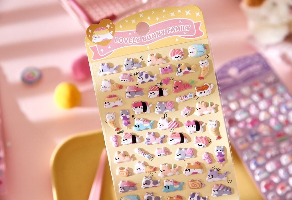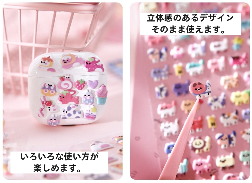 やさしい色合いのアニマルモチーフを、立体感のあるデザインで仕上げたシートシールです。ぷっくりとした質感があり、小さなモチーフでも程よい存在感を楽しめます。シートタイプのため使いやすく、必要なモチーフを少しずつ取り入れられるのも魅力です。手帳デコやノート、スマホケース、小物の装飾など、日常のさまざまなシーンに自然と馴染みます。甘くなりすぎない配色なので、大人の可愛いデコレーションにも取り入れやすく、立体シールや海外文具がお好きな方にも楽しんでいただけるデザインです。