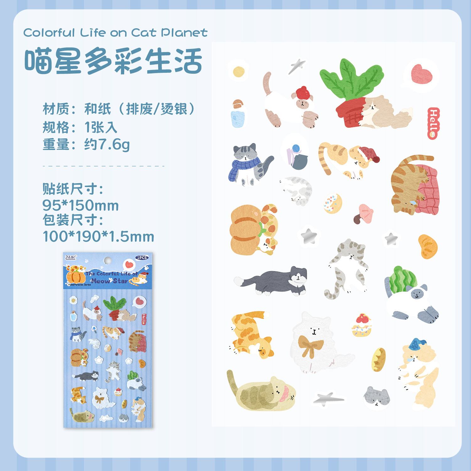 【シール全種セット】猫 和紙 コラージュ素材 手帳デコ|Cat Star Paradise