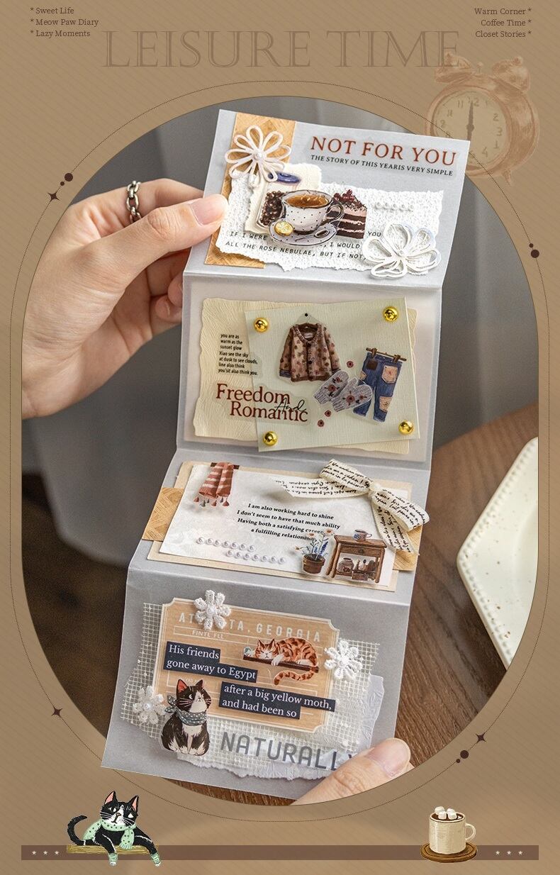 【シール全種セット】海外文具 PETシール 手帳デコ コラージュ素材 カフェ 猫 スイーツ|Cozy Moments