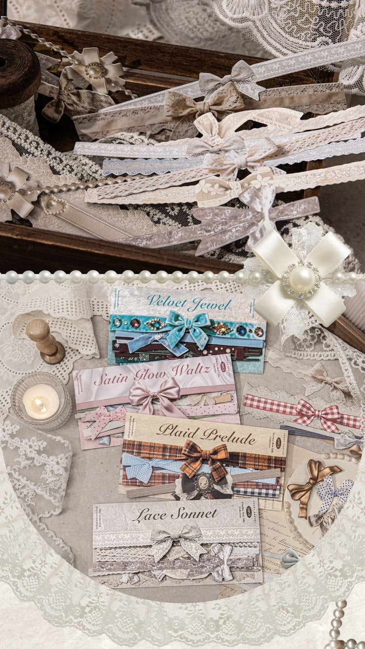 白牛皮紙素材を使用した、細長いカードのようなしっかりとした質感のリボンデザインシールです。ほどよい厚みとハリがあり、折れにくく扱いやすいのが特長。アンティーク調やサテン風、チェック柄やレース調など上品で華やかなリボンモチーフを長めのデザインで楽しめます。手帳デコや日記ページのライン装飾、封筒アレンジ、ラッピング風の演出はもちろん、おすそ分けファイル作りのアクセントにも使いやすいコラージュ素材。細身ながら存在感があり、さりげなくページを引き締めてくれるデザインです。
