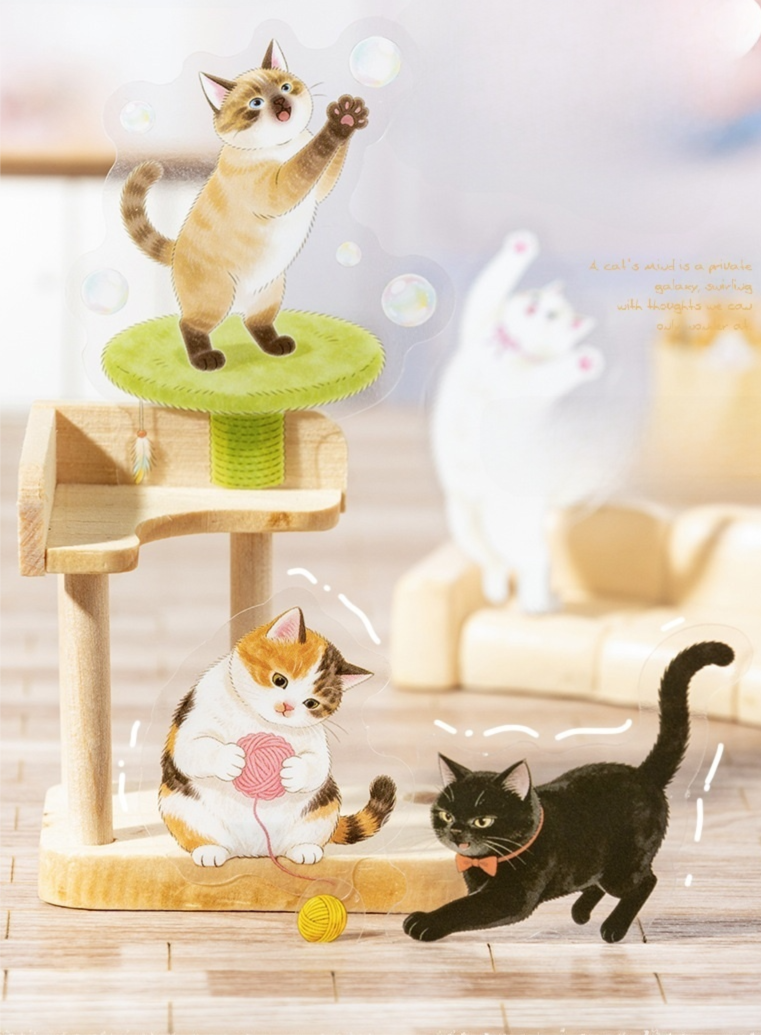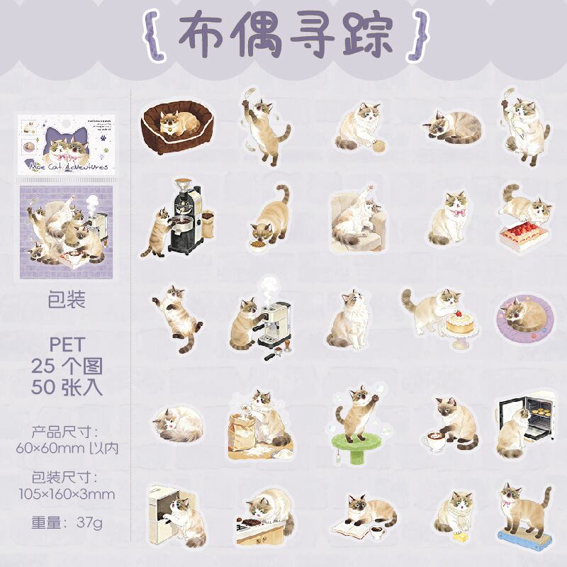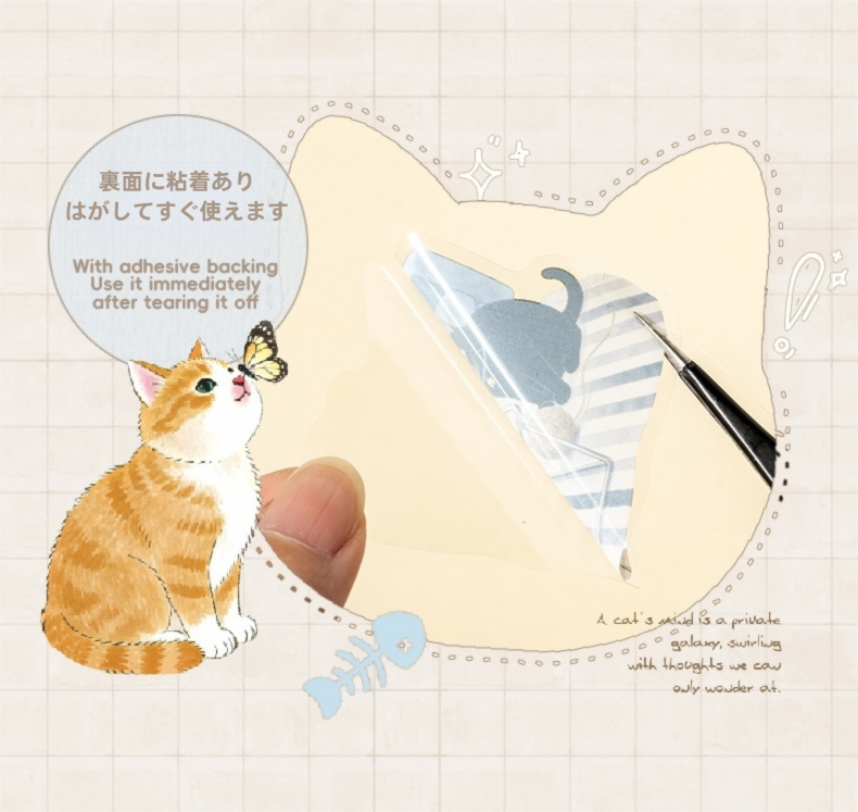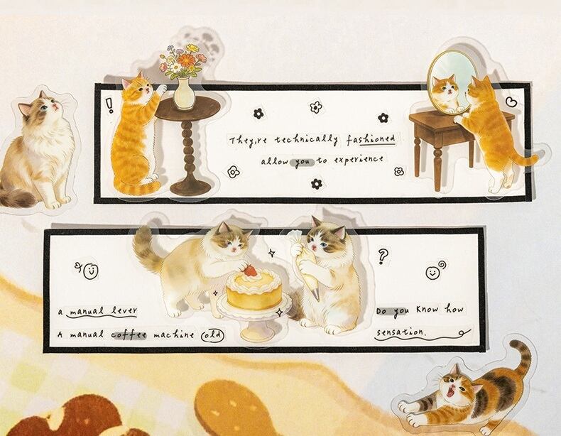 【シール全種セット】海外シール 手帳デコ コラージュ素材 猫デザイン フレークシール PETシール|Adventures of a Cute Kitten