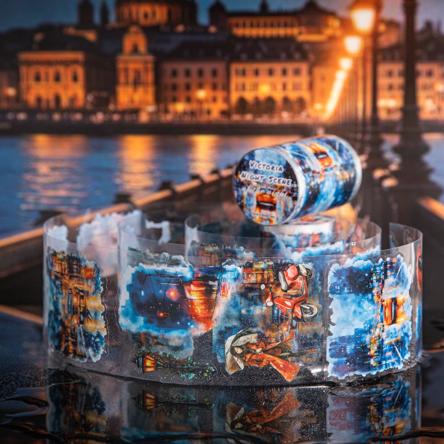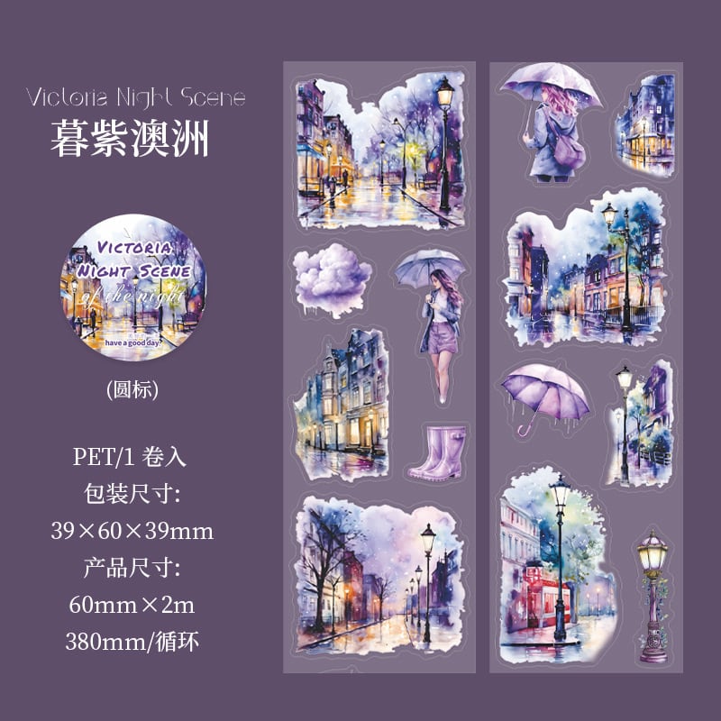 【シール全種セット】海外文具 街並み 雨の日 コラージュ素材 PETシール 手帳デコ 夜景|Victoria Night Scene