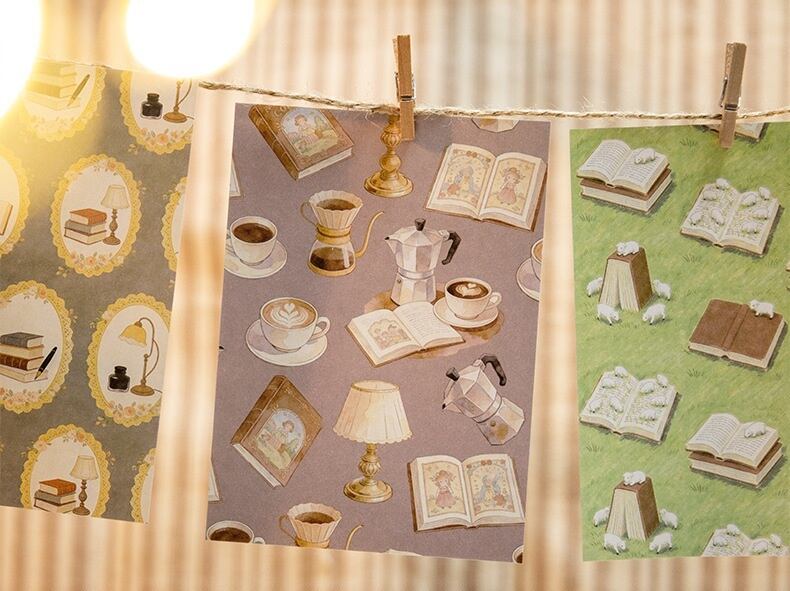 【素材紙全種セット】手帳デコ コラージュ素材 デザインペーパー 海外紙もの パール紙 本 猫 星 空|Starlight Bookstore