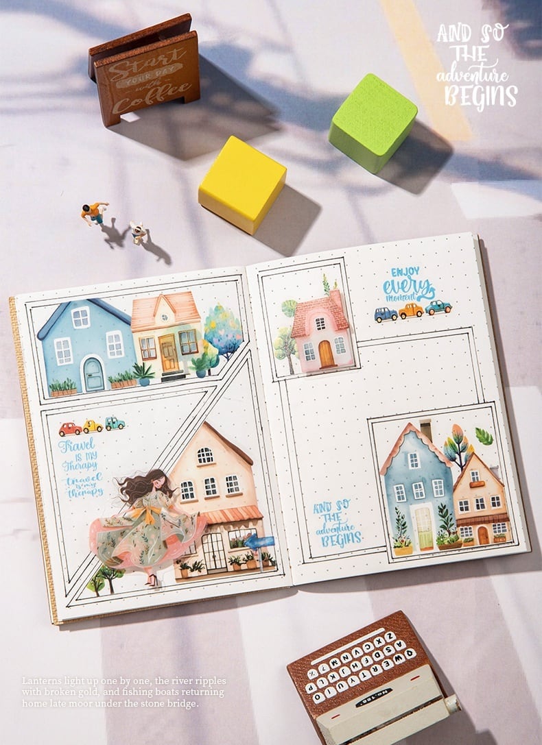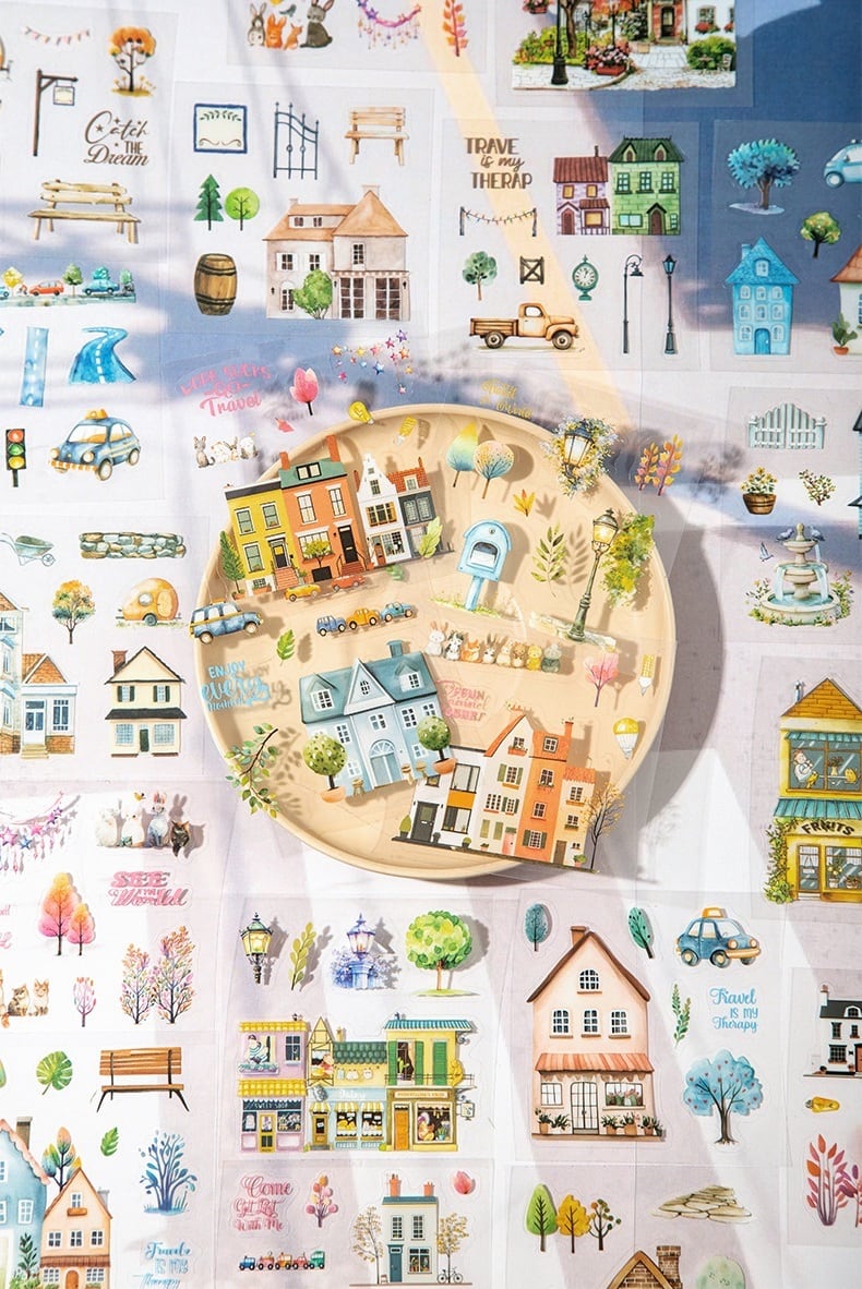 【シールブック全種セット】海外文具 コラージュ素材 手帳デコ 建物 風景|Street scene of the small town