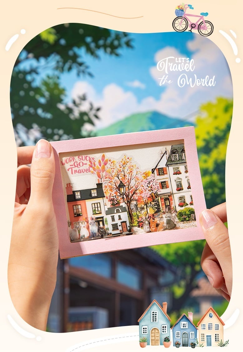 やさしい色合いで描かれた小さな町の風景を詰め込んだシールブックです。家やお店、車や街路樹などのモチーフが揃い、ページごとに統一感のある街並みが広がります。1ページずつ切り離して使えるため、手帳デコやコラージュ素材として自由に配置しやすく、日常の記録や旅のイメージづくりにもぴったりです。建物や風景モチーフを中心にしたデザインで、ナチュラルで温かみのあるページ作りを楽しめます。