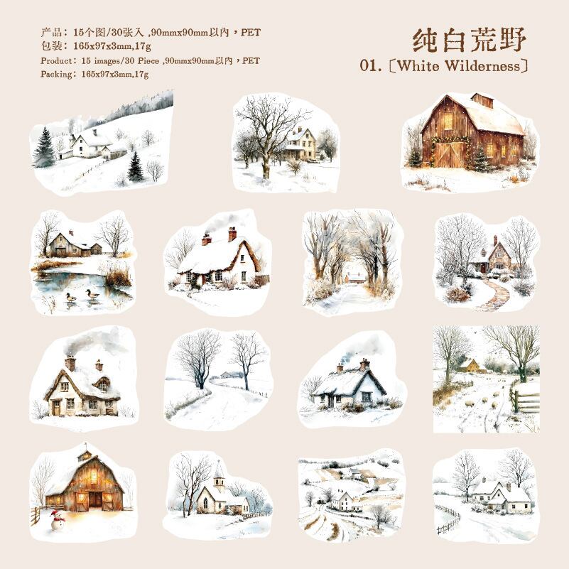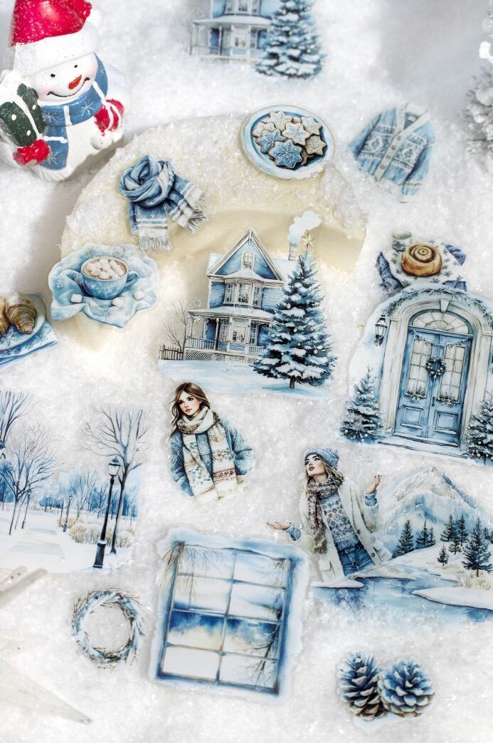 冬がテーマのフレークシールです。美しいデザインが手帳やコラージュに素敵なアクセントを加えてくれます。心温まる冬の雰囲気を楽しんでみてください。