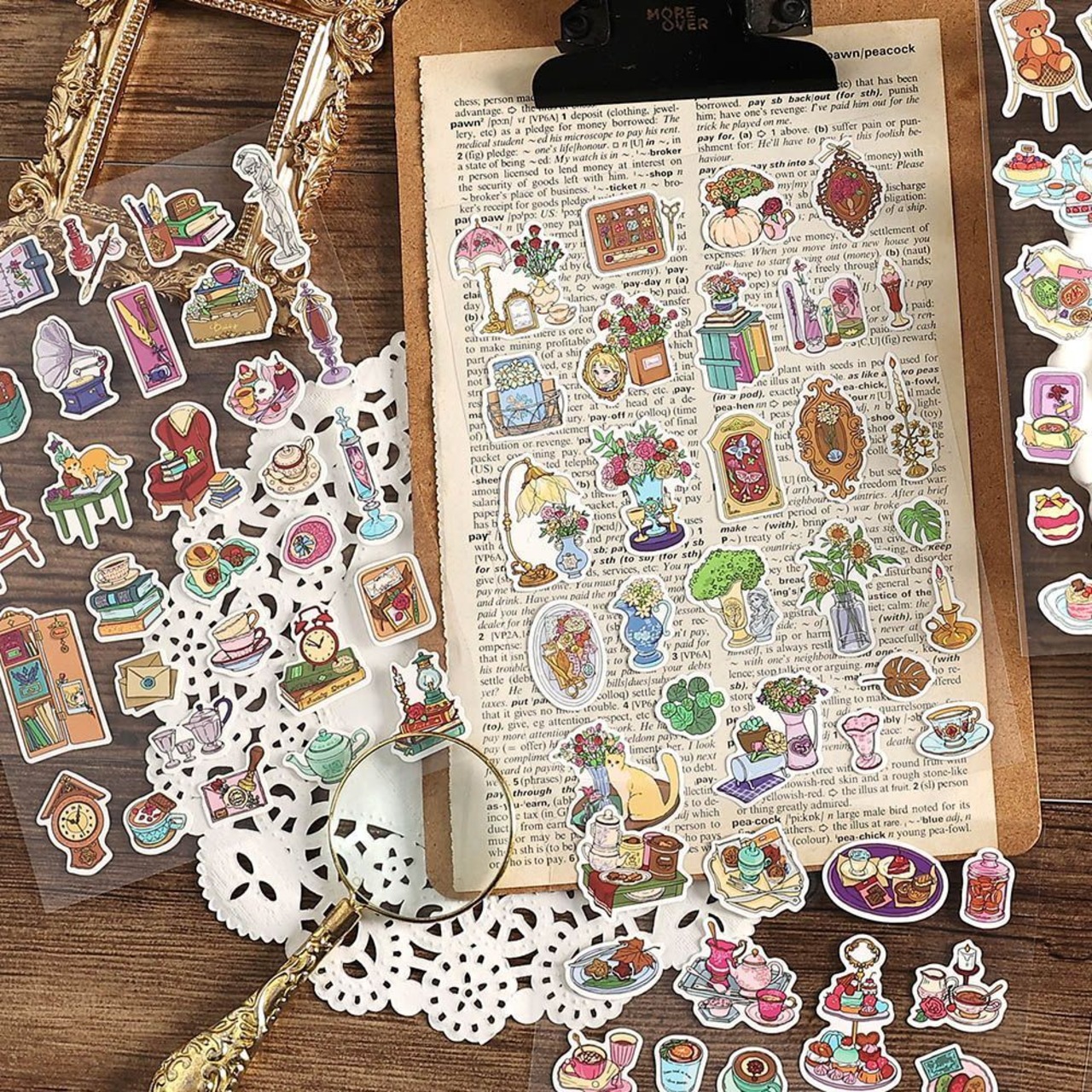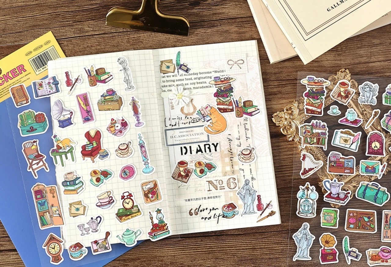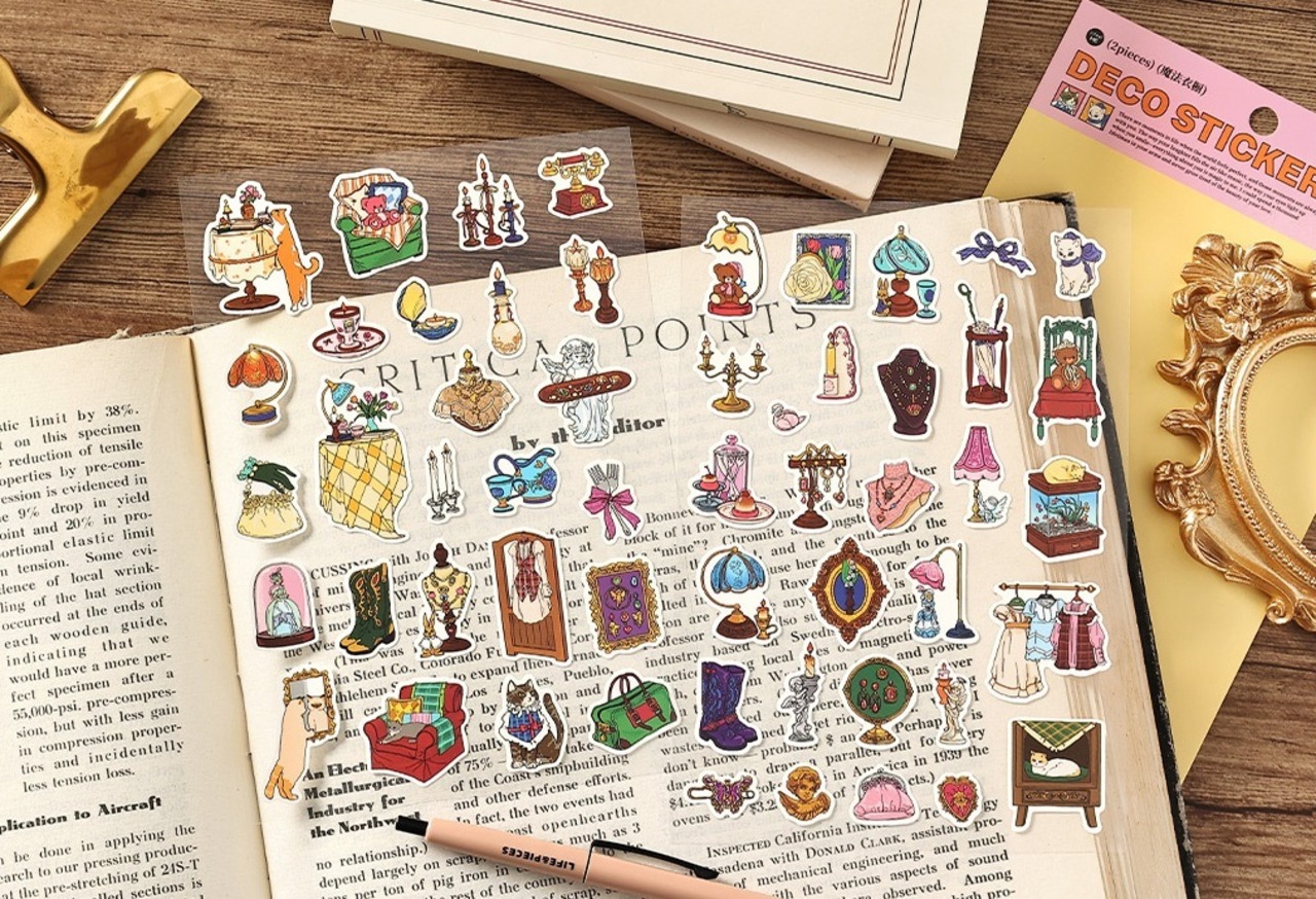 中世の魅力を詰め込んだシートシールです。お洒落で可愛いデザインとポップな色合いで、手帳にもおすすめなサイズ感がGOOD。