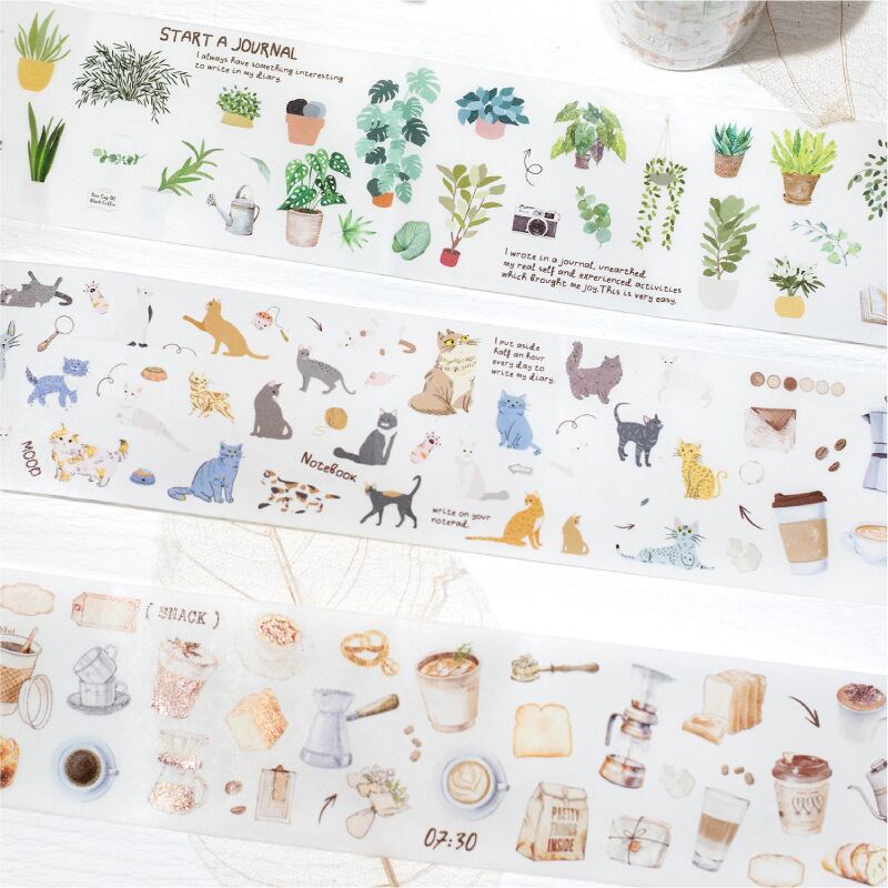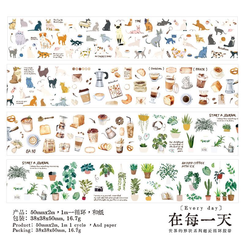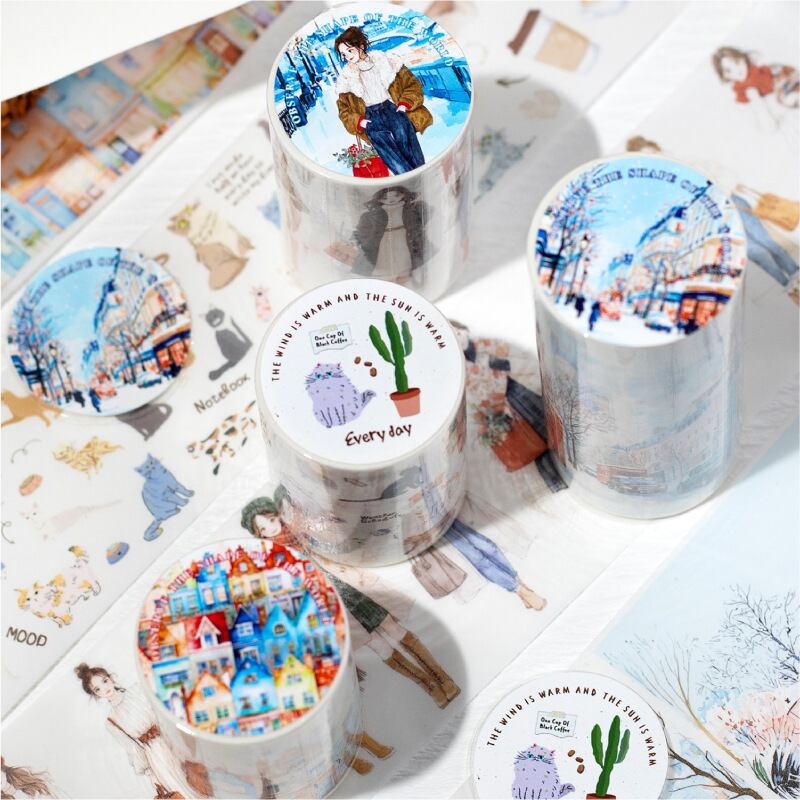 和紙タイプのマスキングテープです。全体的に薄く淡い印刷ですが、主張しすぎないコラージュがお楽しみいただけるおすすめの商品です。