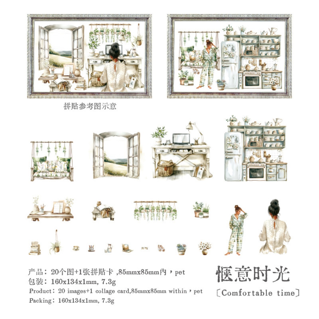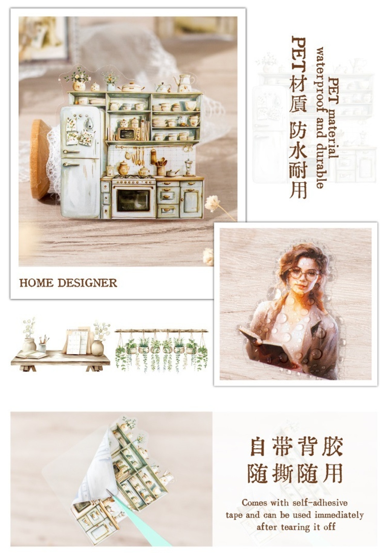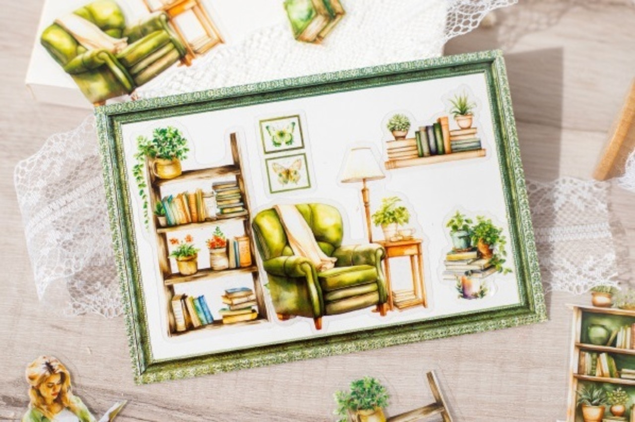 おしゃれなインテリアをテーマにしたフレークシールです。デザインごとに個性があり、思いのままにコラージュやデコレーションを楽しんでいただけます。