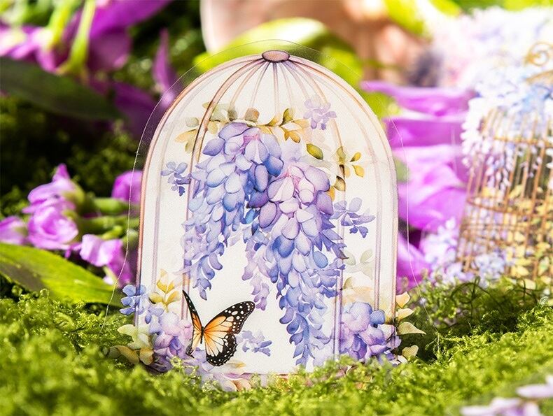 幻想的な藤の花をテーマにしたフレークシールです。優雅なデザインが詰まったシールで想像力を膨らませて、コラージュやデコレーションをお楽しみください。