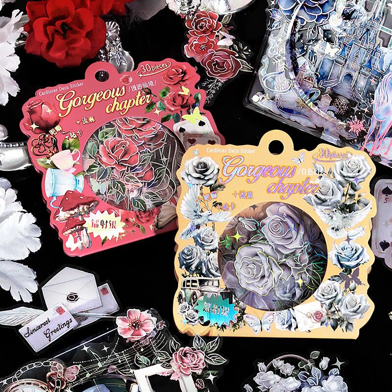 キラキラと華やかなデザインが魅力的なシールが30枚入っています。デコレーションや手帳の飾り付けにぴったりの商品ですので、お好きな組み合わせでお楽しみください。